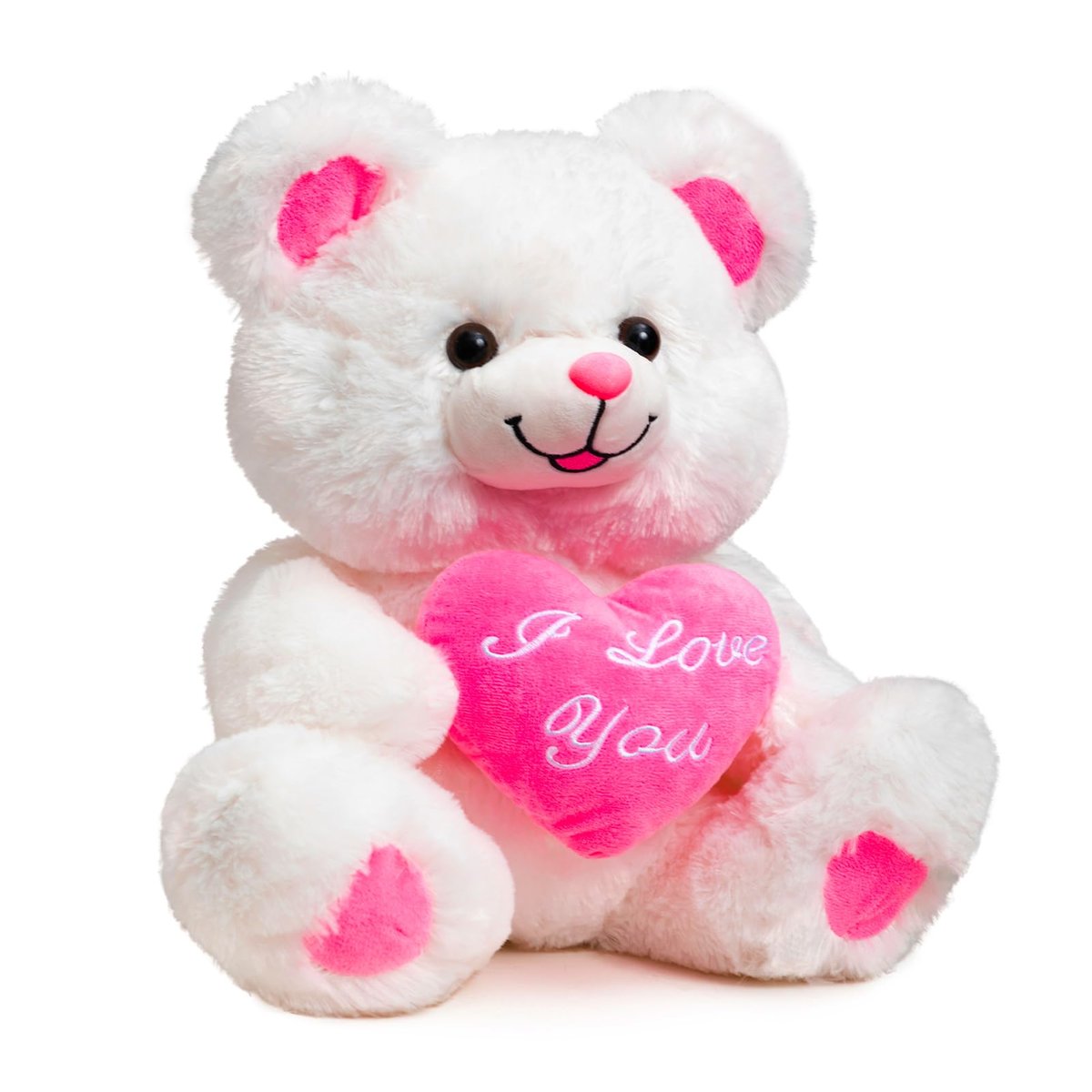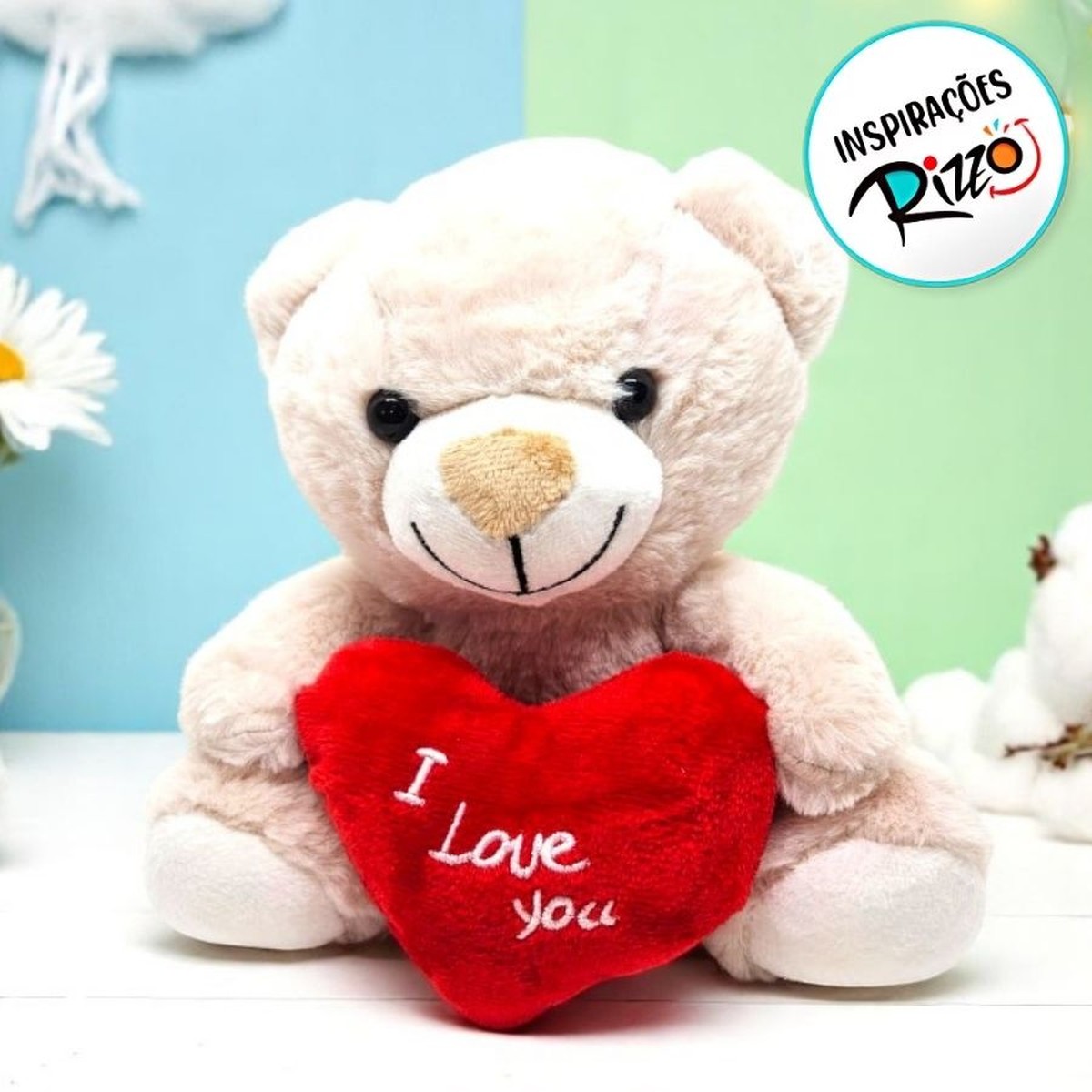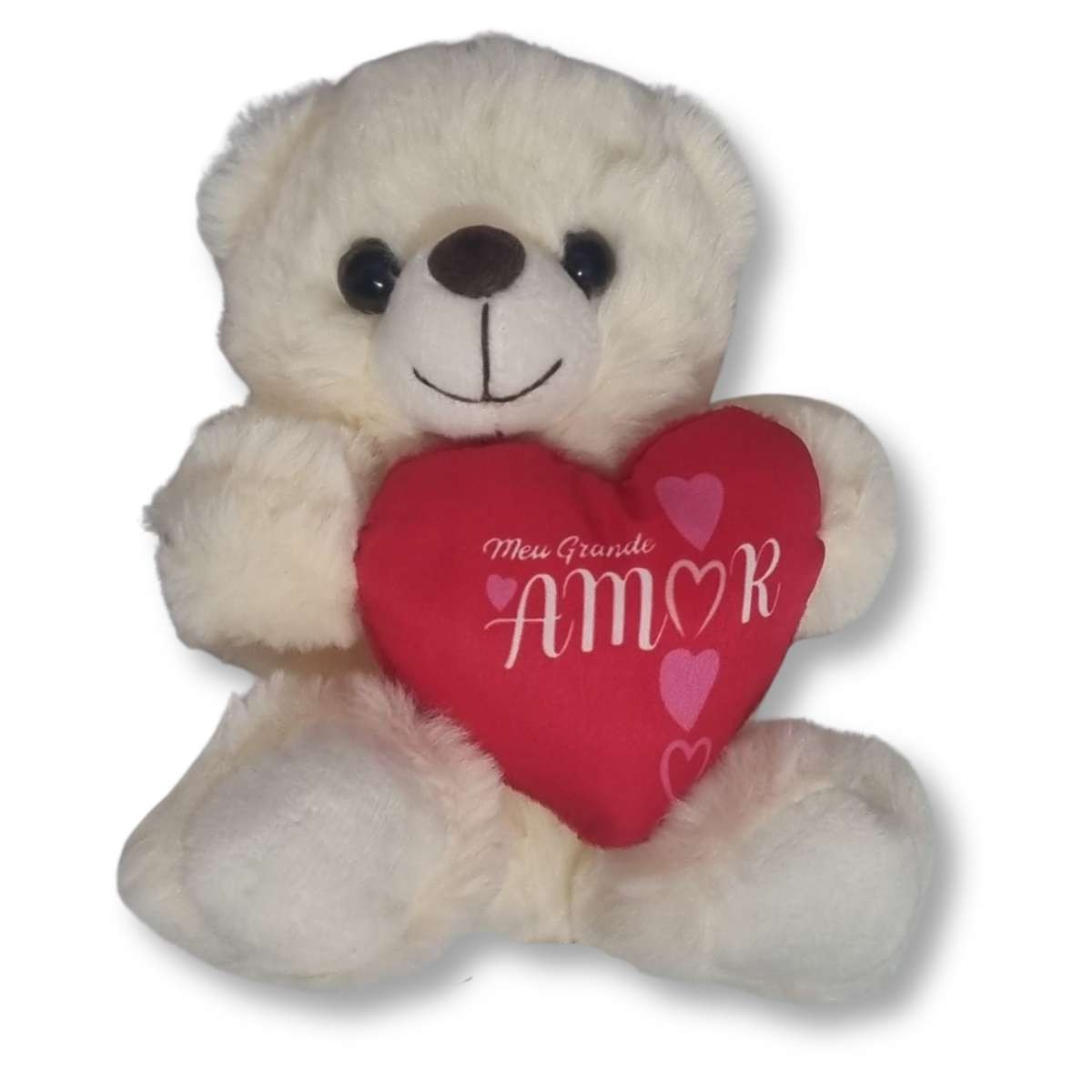 Urso de Pelúcia com Coração Eu Te Amo 25 cm - Mini Love Pérola