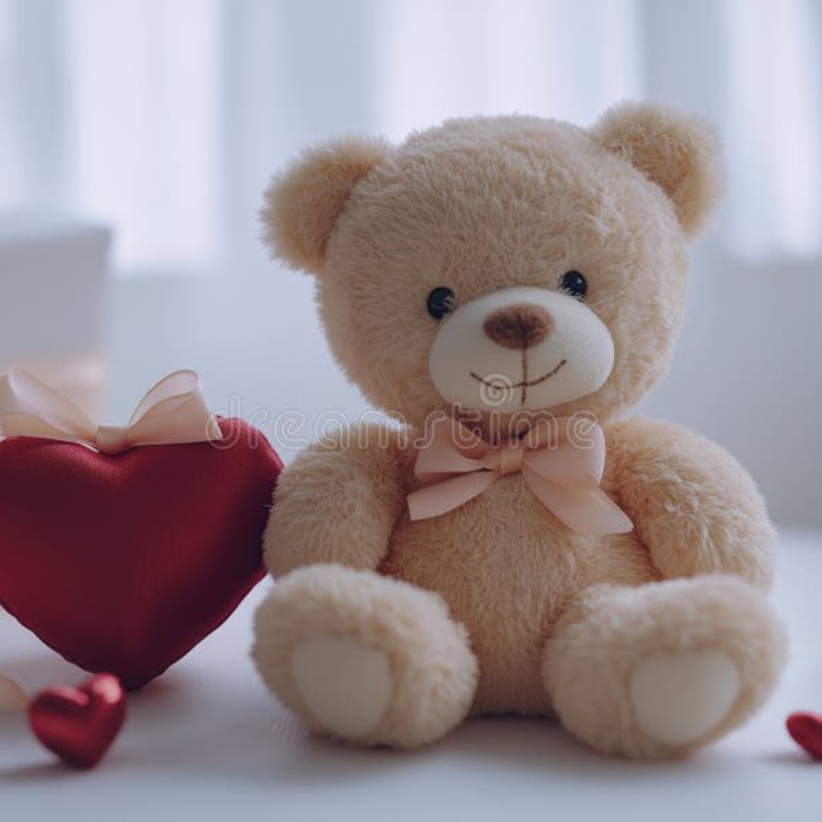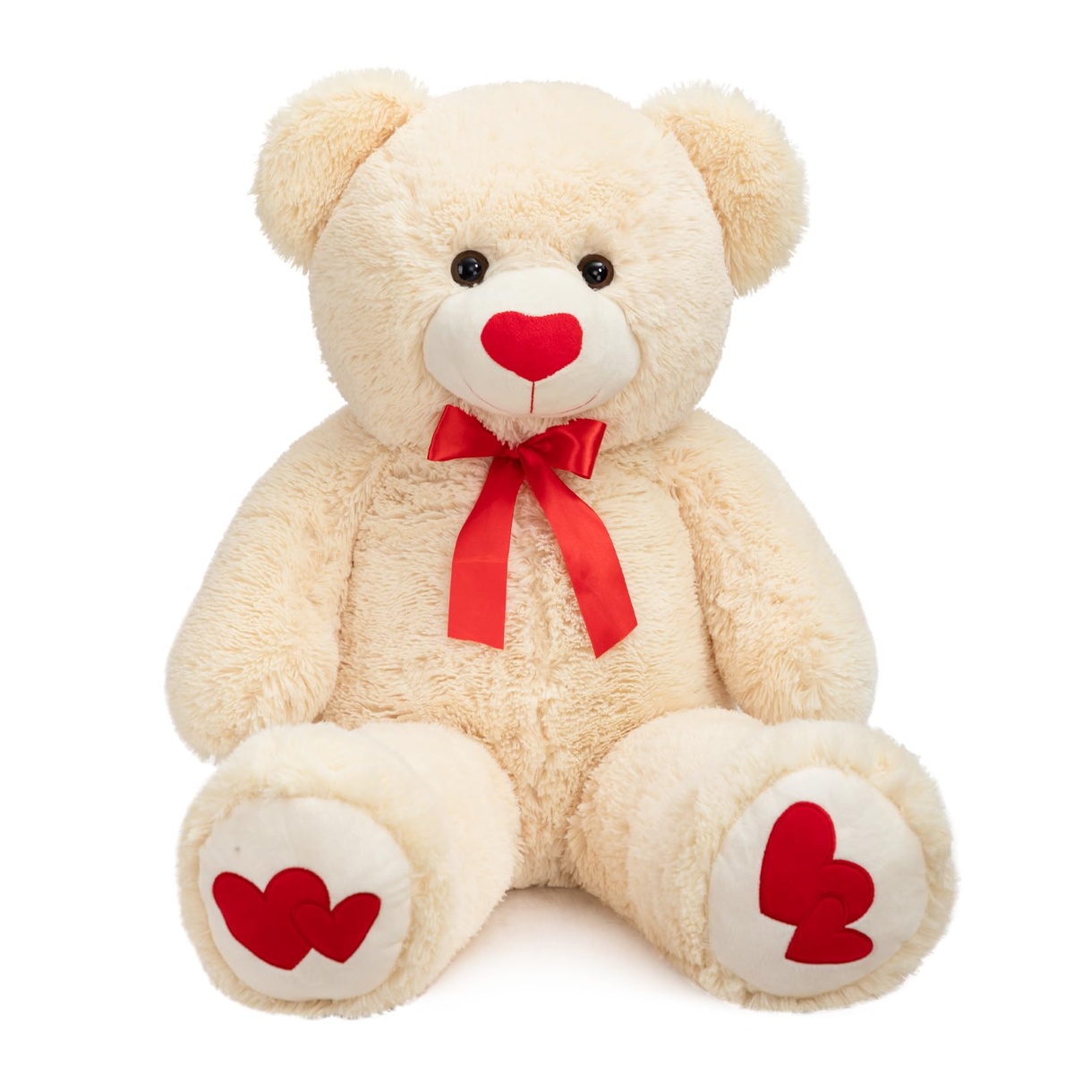 Urso de Pelúcia com Coração 70 cm - Josh com Laço Areia